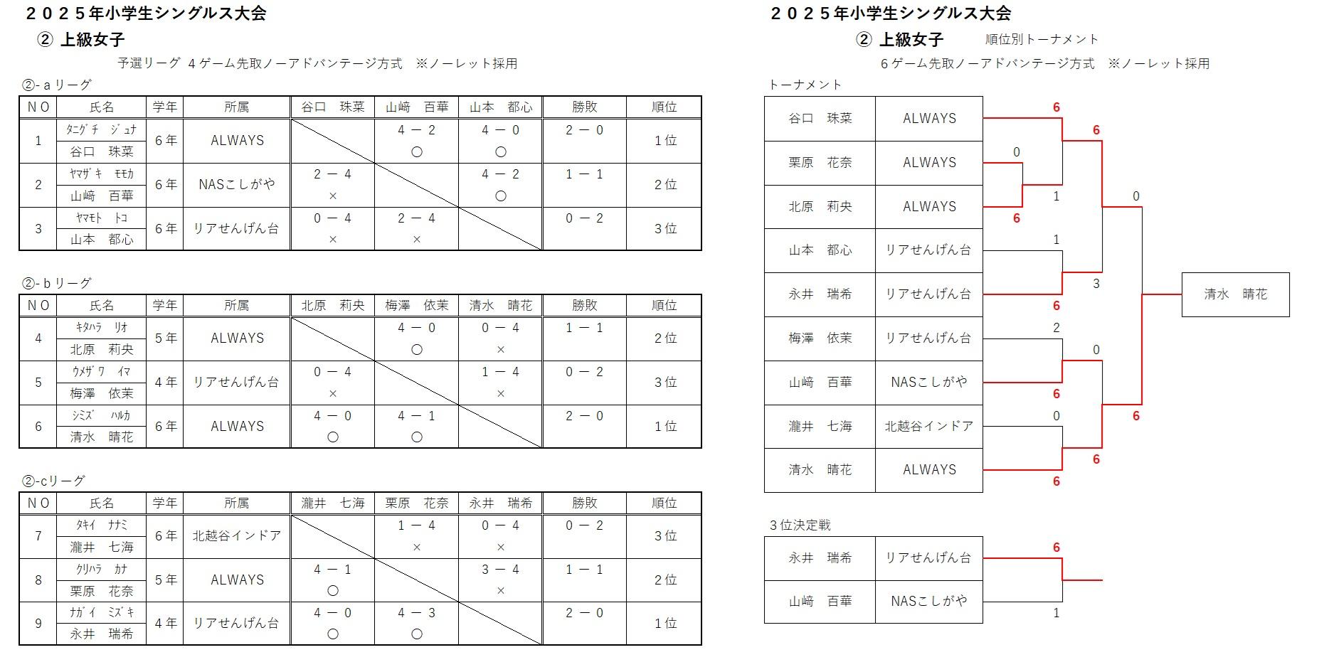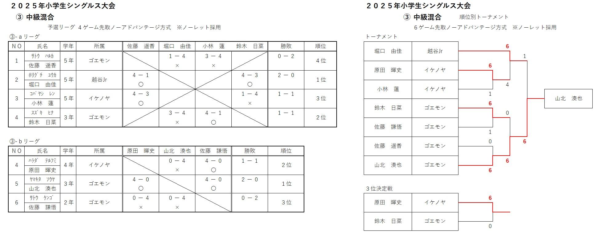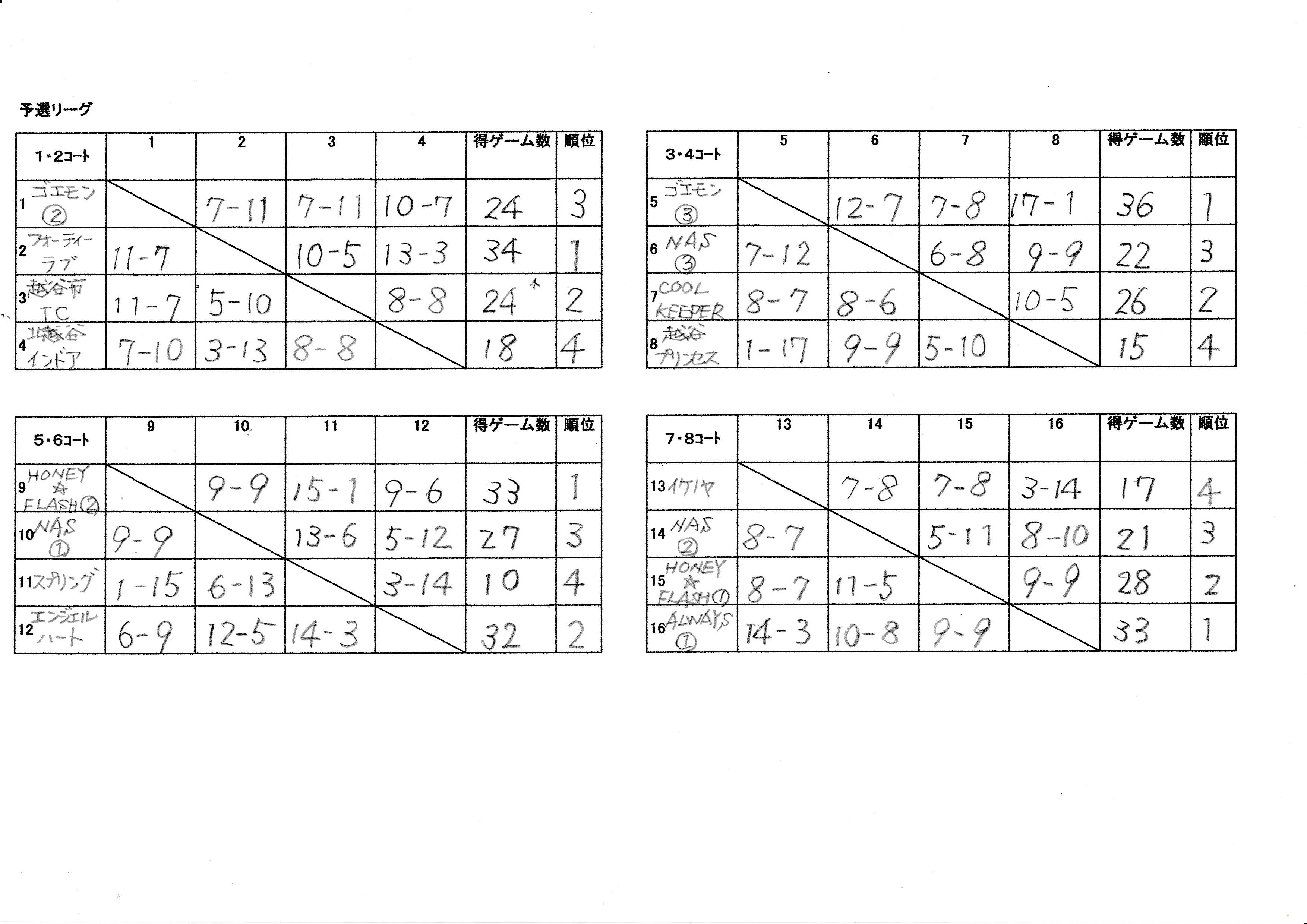 順位別戦 結果